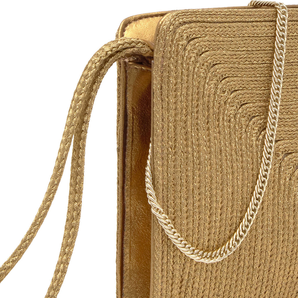 Make a subtle statement at your next soirée with the golden glamour of Castañer’s Bali Clutch Bag. Handmade in Spain, this pochette design showcases artisanal metallic braiding, a secure zipper closure, and the option of a matching wrist strap or chain shoulder strap.