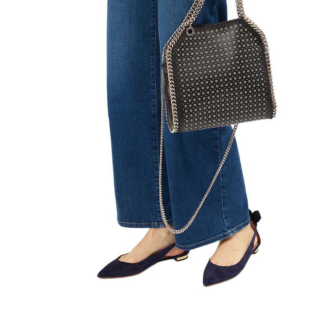 The Bow Tie Ballet Flats showcase one of Aquazzura’s most recognisable details: a playful bow at the heel. Handcrafted in Italy from 'Mezzanotte' navy suede, the design features a pointed toe silhouette, side cutout details and a metallic block heel base.