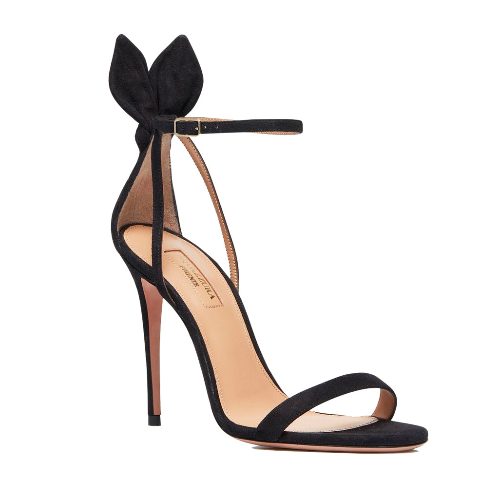 Put your best foot forward in Aquazzura's Bow Tie sandals. Handmade in Italy in black suede leather, this style features a bow detail at the heel, a 10.5cm stiletto heel and a buckled ankle strap. Pair them with a cropped trouser for a fabulous finish to a suiting look.