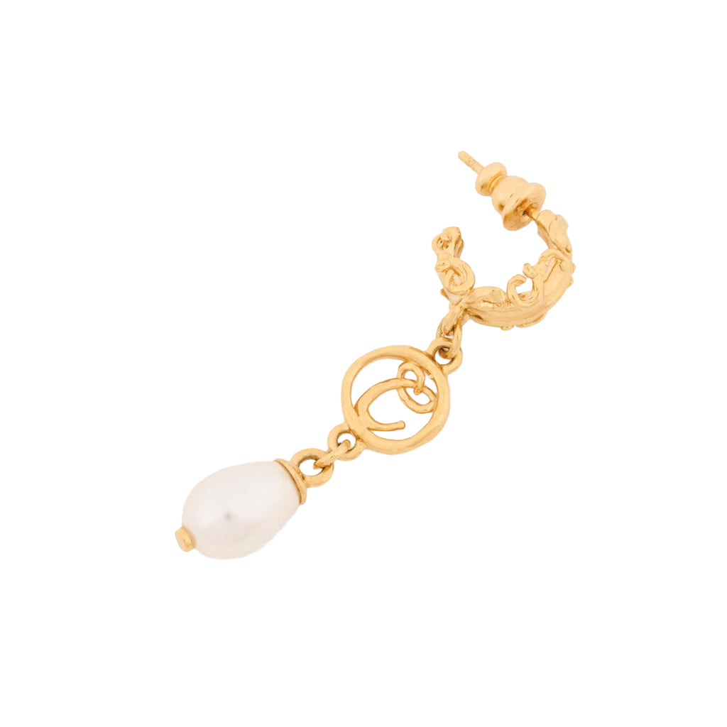 Intricate ornamental details ensure the Chloé Classy Earrings elevate every outfit. Crafted in Italy from gold-tone brass, this dangling design features a cursive ‘C’ medal, a glass pearl pendant and a pin closure suitable for pierced ears.