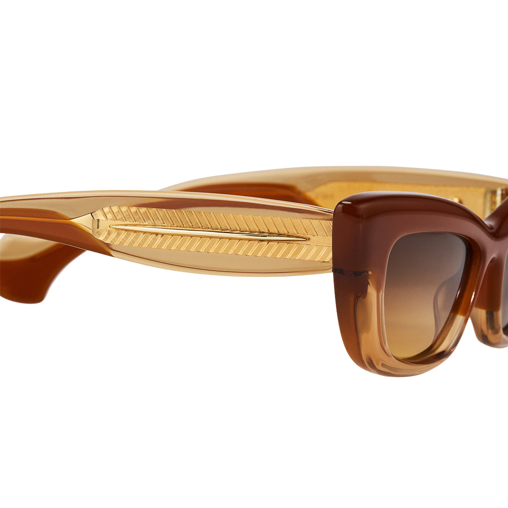 The upswept silhouette of Aquazzura’s Riviera sunglasses offers a flattering frame for the face while making a stylish statement on sunny days. Crafted in Italy from lightweight acetate, this cat-eye style features a textured metal core in the arms and tonal tinted lenses.