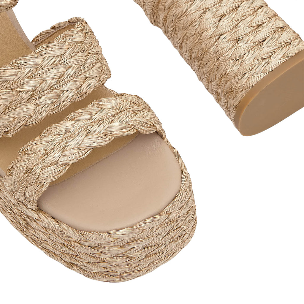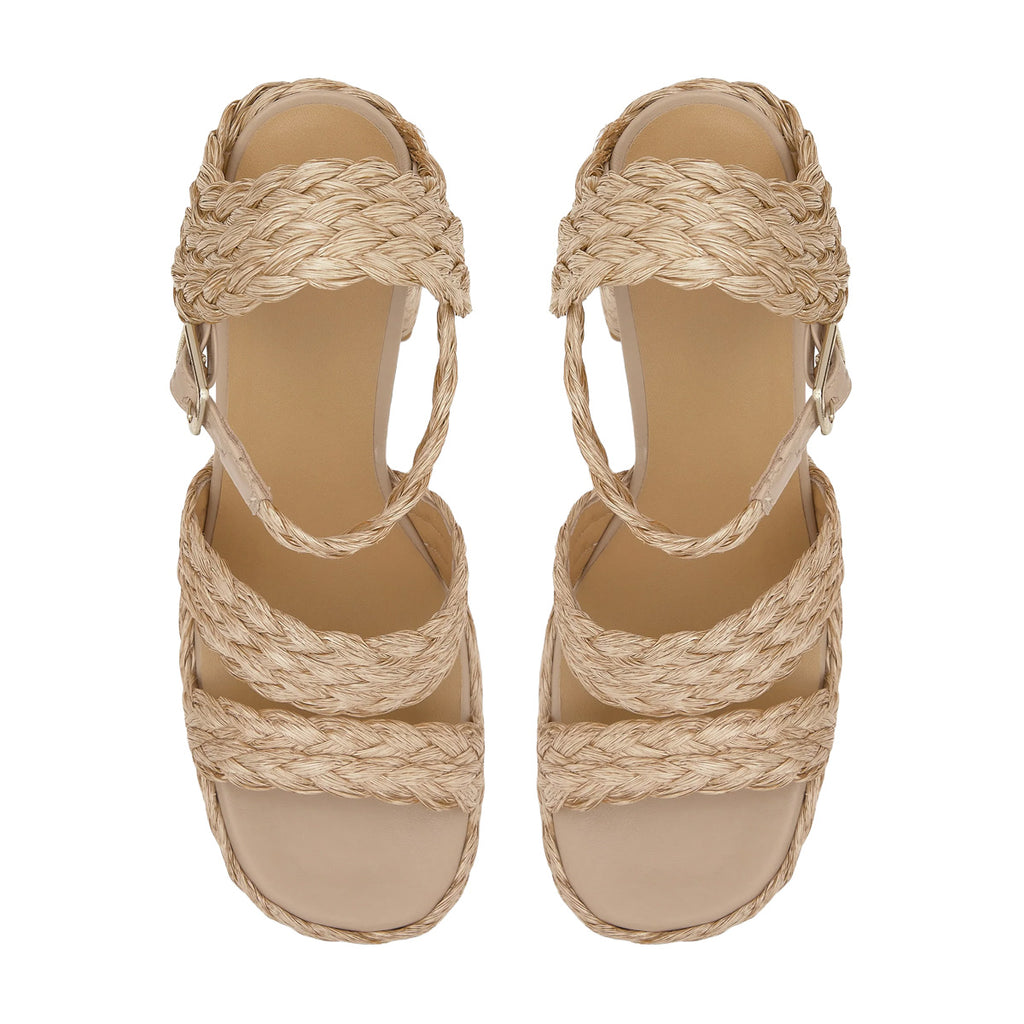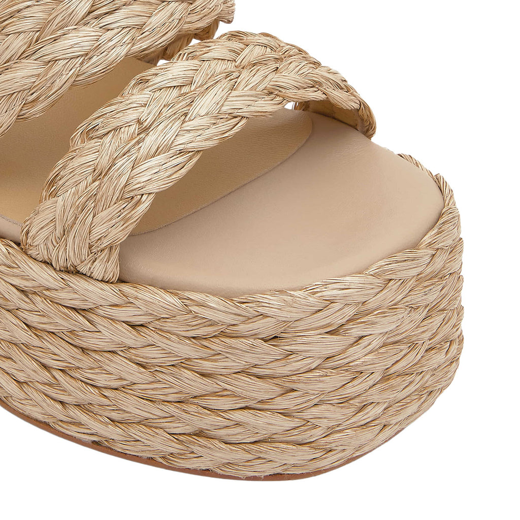 - Upper: raffia, leather; Lining: leather; Insole: leather; Outsole: rubber