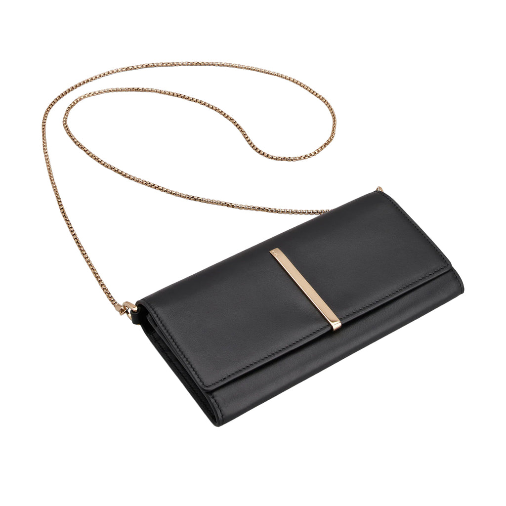 Form and function are perfectly fused in Tod’s Barrette Wallet on Chain, where sleek design doesn’t compromise on stunning aesthetic. Crafted in Italy from smooth calfskin leather, this compact piece is detailed with a polished metal bar, multiple internal compartments, a press-stud closure and a removable chain shoulder strap.