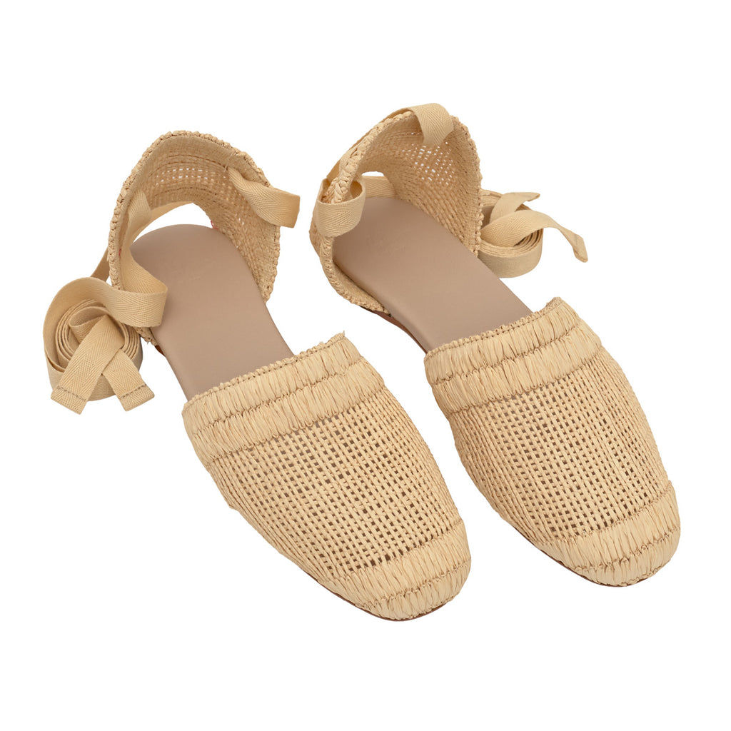 With an organic, natural aesthetic, the Goldie Tie Up Flats from Castañer offer an effortless feel and the perfect finish for summer styling. Handcrafted in Spain, this lightweight flat features an open-weave braided upper, a softly structured silhouette and fabric ankle ties for an adjustable fit.