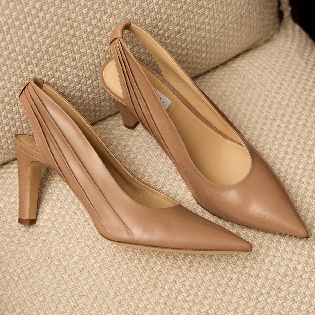 Ticking the box for both timeless and modern, Gabriela Hearst’s Amari Pump is an ideal addition to the considered footwear collection. Crafted in Italy from smooth goat leather, this slingback style features a sharp pointed toe, ruched detailing at the heel and a block high-heel base.