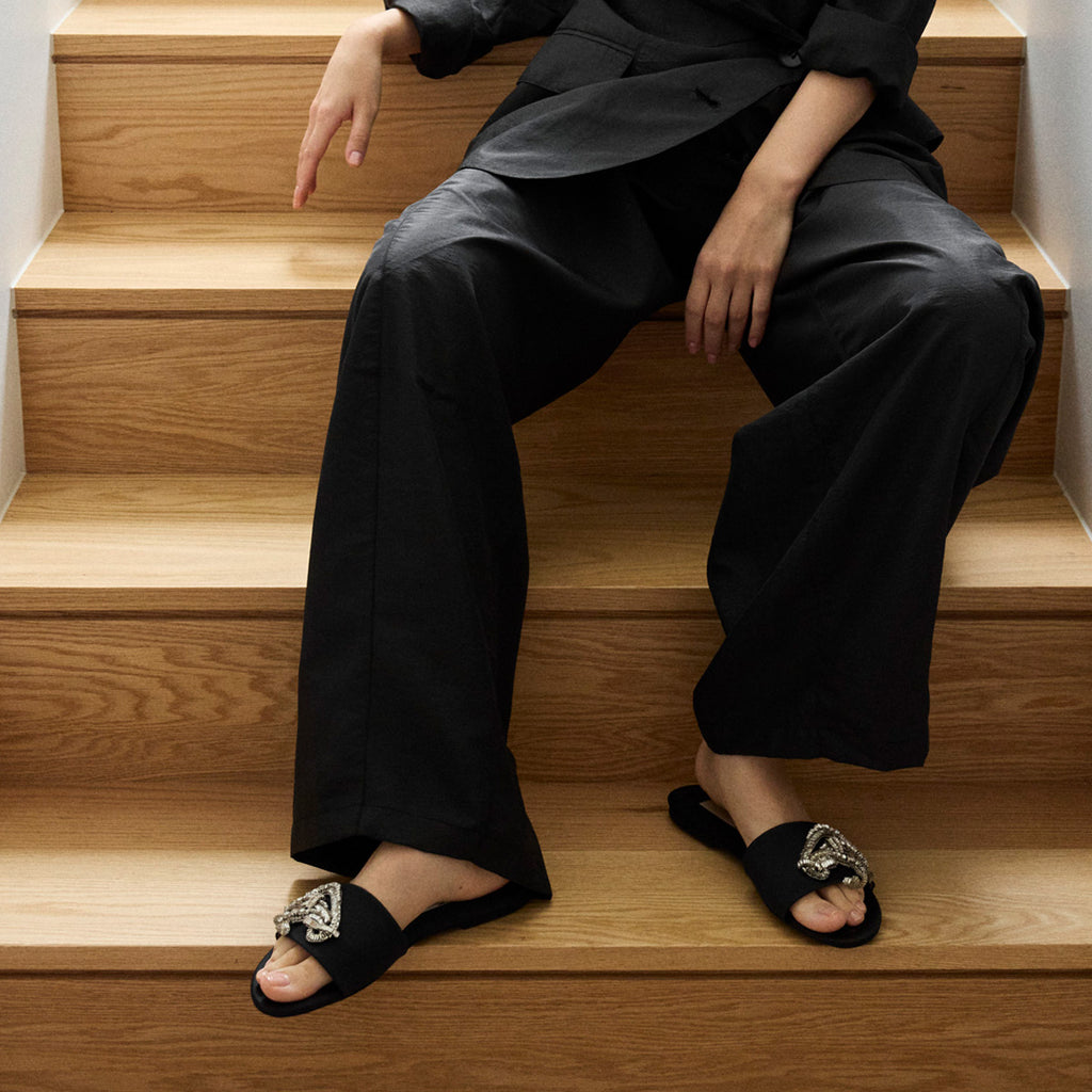 Embellished Satin Flat Slide