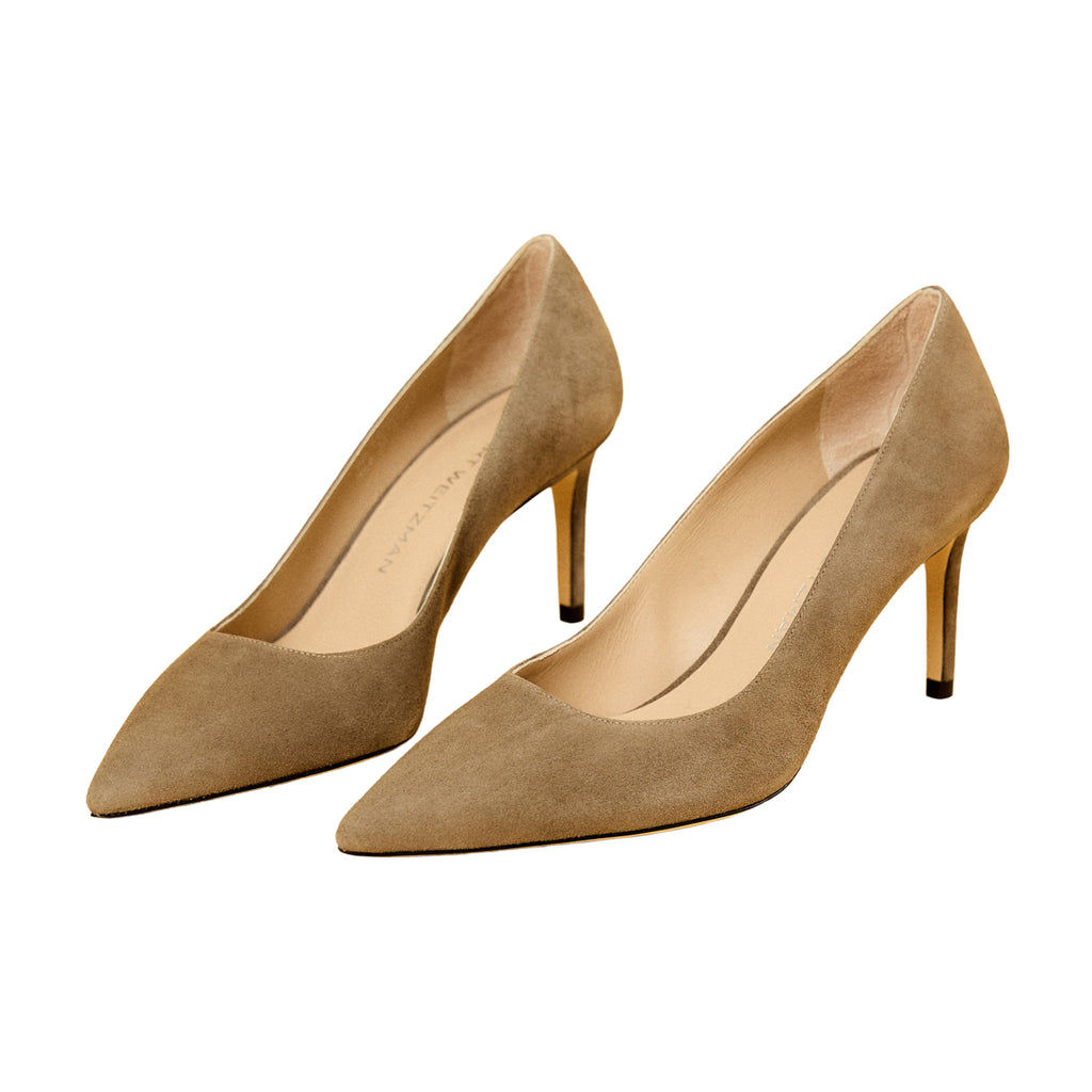 A power pump perfect for both the boardroom and after hours—Stuart Power is a modern update to Stuart Weitzman’s iconic pump. Handcrafted in Spain from black suede leather, this timeless style is designed with a pointed toe silhouette, a cushioned foam insole and a precision-angled stiletto heel base.