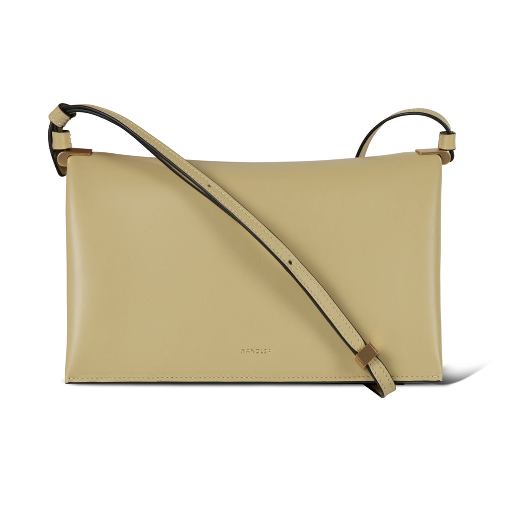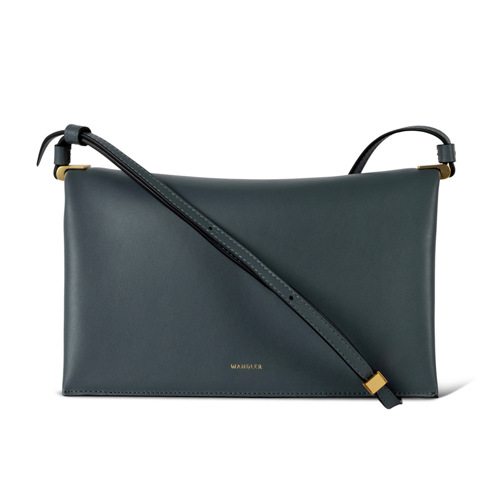 Wandler's 'Uma Baguette' bag appears like a square shape from the front and the sides showcase soft folds. Handmade in Italy, this style features an adjustable shoulder strap, contrast suede lining, a gold foil logo and flap closure.
