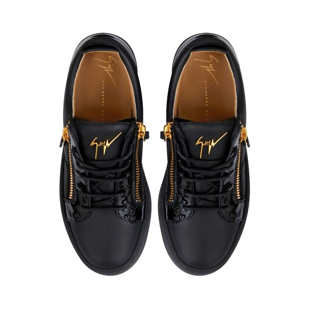 Giuseppe Zanotti’s Gail Sneaker adds an element of edge to everyday dressing. Crafted in Italy from a mix of calf and patent leathers, this low-top silhouette features the brand's signature dual side zips, centre front laces and a metallic logo plaque.