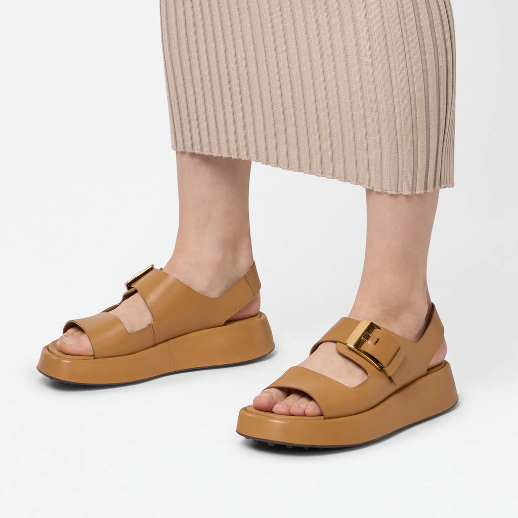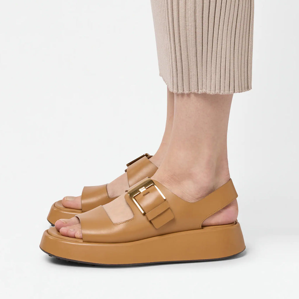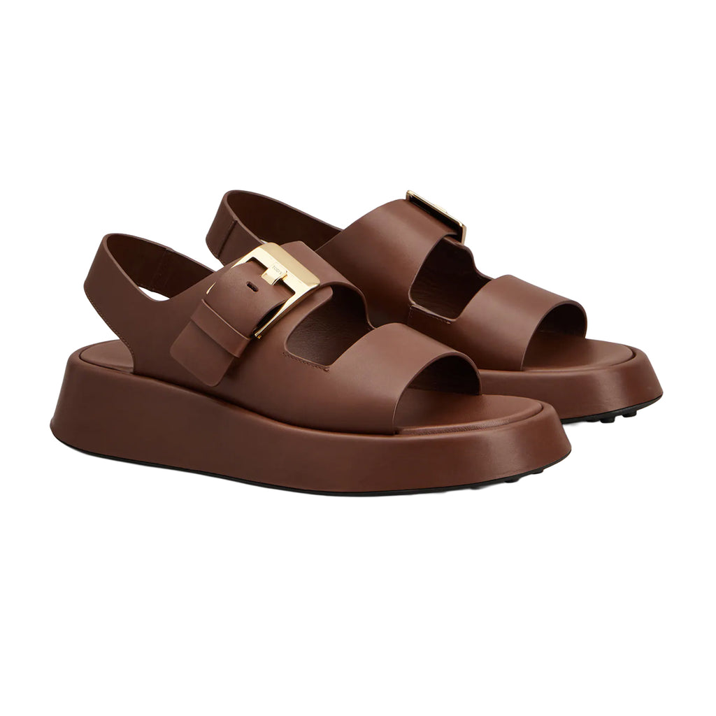 The comfort-to-cool ratio is carefully balanced in Tod’s leather trekker sandals. Handmade in Italy, this double-band design is finished with a branded maxi metal buckle, a chunky platform sole and the brand’s signature pebbled rubber outsole.